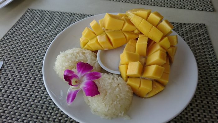 私たちは、珍しくここで「カオニャオ・マムアン」を注文しました。