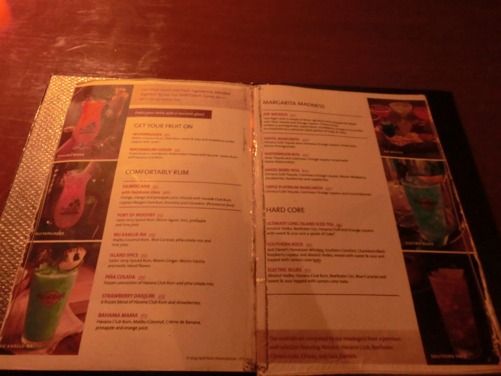 パタヤ ハードロックカフェ メニュー