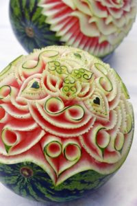 カービングというのは、専用ナイフ1本で野菜やフルーツに繊細な彫刻を施す